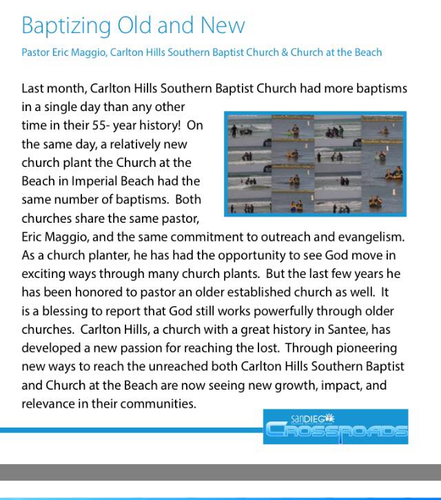 The Following Article Appeared on the front page of The Christian Examiner (Church at the Beach is currently the largest and fastest growing Baptist church in the City of Imperial Beach)